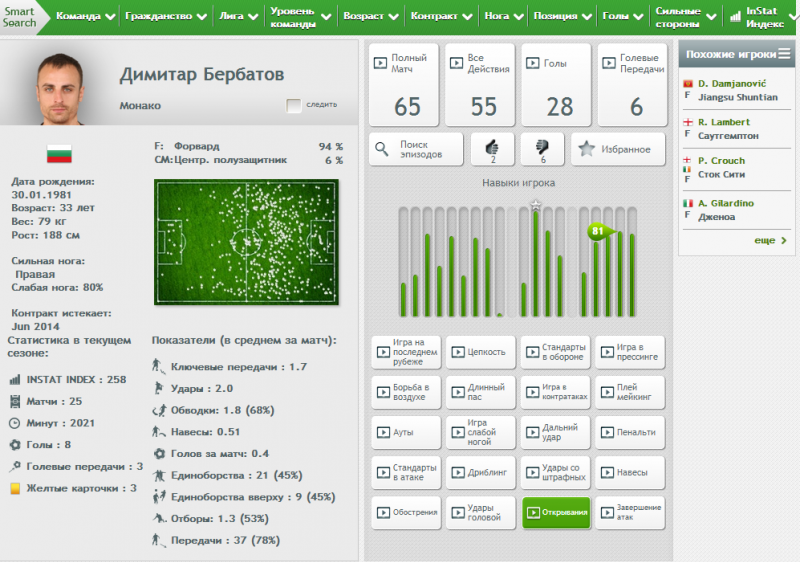Отечественные клубы в основном используют две программы. Наряду с Wyscout самой популярной скаутской системой является InStat. Появилась она семь лет назад и быстро завоевала позиции на постсоветском пространстве. Если Scout 7 просто была первой, Wyscout взяла свое за счет качественного видеоразбора действий игрока, то InStat сделала ставку на анализ.